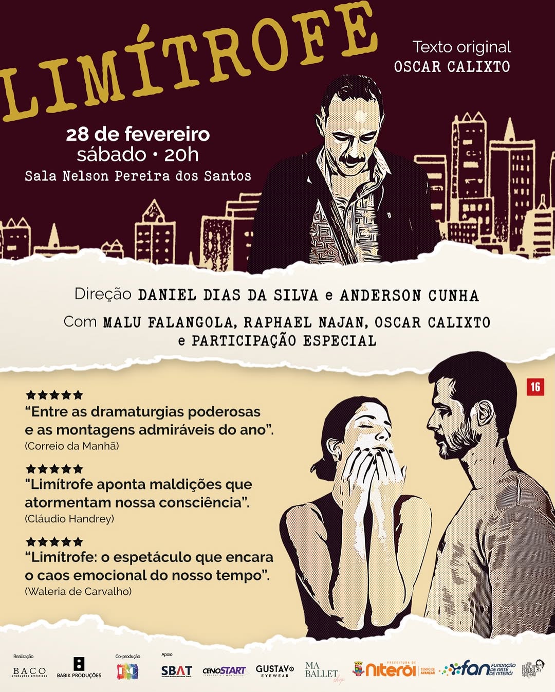 O espetáculo “Limítrofe” está de volta aos palcos e chega pela primeira vez em NITERÓI, na sala Sala Nelson Pereira dos Santos, em uma apresentação única e GRATUITA no dia 28 de Fevereiro.