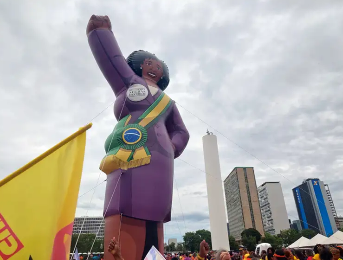 Uma enorme mulher negra inflável, de 14 metros, com uma faixa presidencial onde se lê “Mulheres Negras Decidem” foi o ponto de partida de centenas de caravanas que integraram a 2ª Marcha Nacional das Mulheres Negras por Reparação e Bem-Viver, nessa terça-feira (25), rumo à Esplanada dos Ministérios. A estimativa é de que cerca de 300 mil pessoas ocuparam as laterais do gramado da área central de Brasília.
