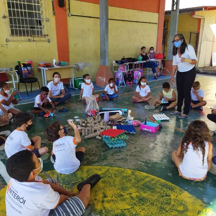 Ontem, 22/10 foi realizada uma oficina de artesanato reaproveitando material reciclável na E.M. Santos Dumont em Niterói – RJ. Essa atividade tem o objetivo de promover a sensibilização ambiental pública para a preservação ambiental.