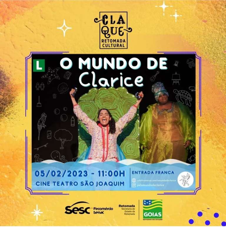 Cidade de Goiás – O Coletivo Tônus apresenta no dia 05 de fevereiro, às 11 horas, no Cine Teatro São Joaquim, o espetáculo “O Mundo de Clarice“. A apresentação tem entrada gratuita e faz parte da programação do Claque – Retomada Cultural.