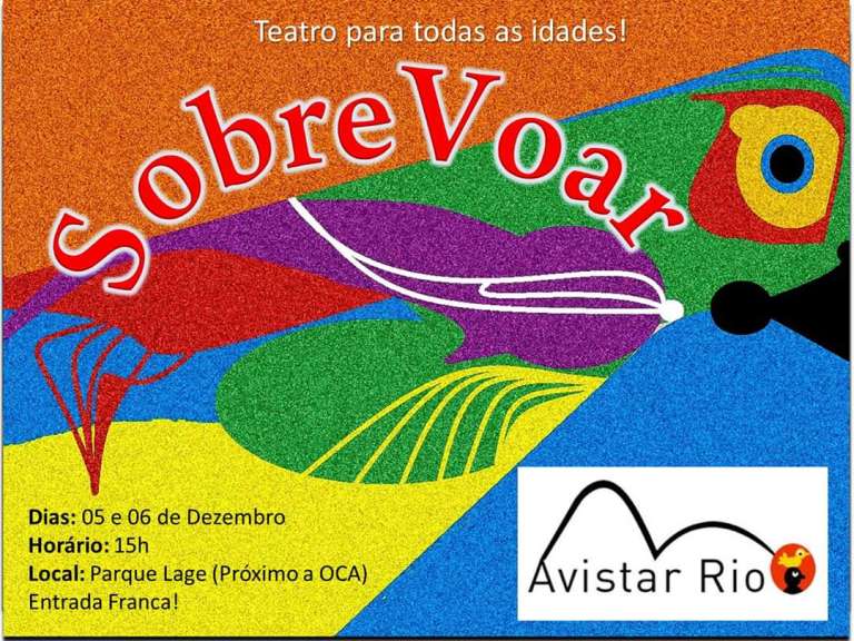 Neste fim de semana tem a estreia do espetáculo “SobreVoar” no Parque Lage, Rio de Janeiro – RJ. 05 e 06 de Dezembro de 2015, às 15 horas com entrada gratuita. O espetáculo faz parte da programação do Avistar Rio.